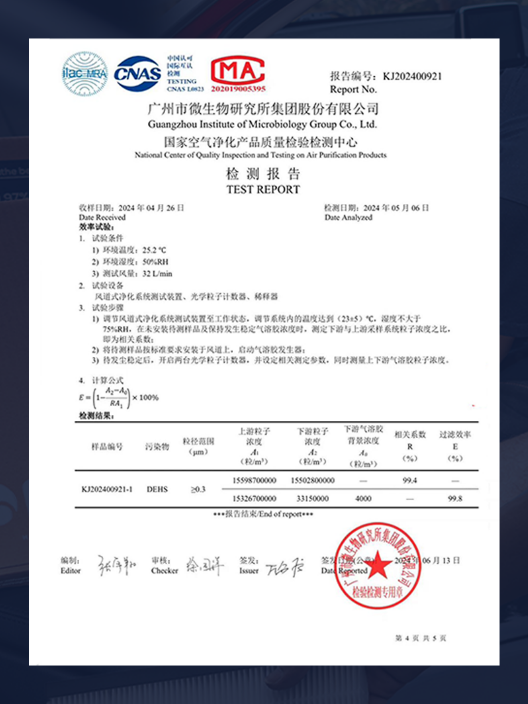 Effectivity in Removing Harmful Particles